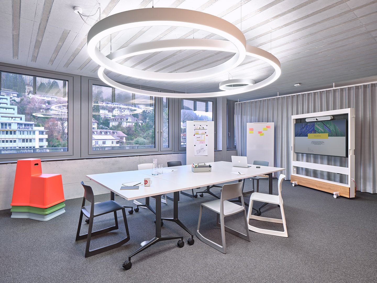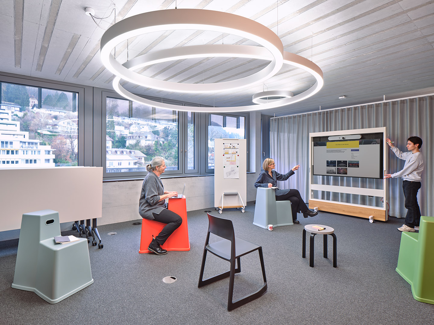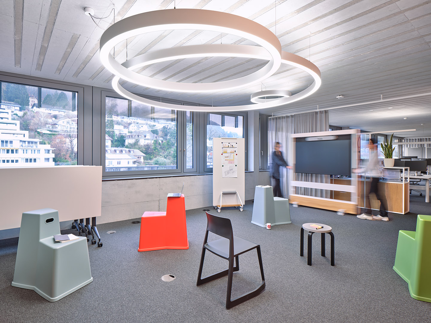 Vitra's Consulting & Planning Studio (CPS) worked with the architects and the Swiss Museum of Transport to develop a multifaceted environment. A series of workshops were carried out with team representatives to document the different needs and requirements and implement them within the space to ensure efficient collaboration.