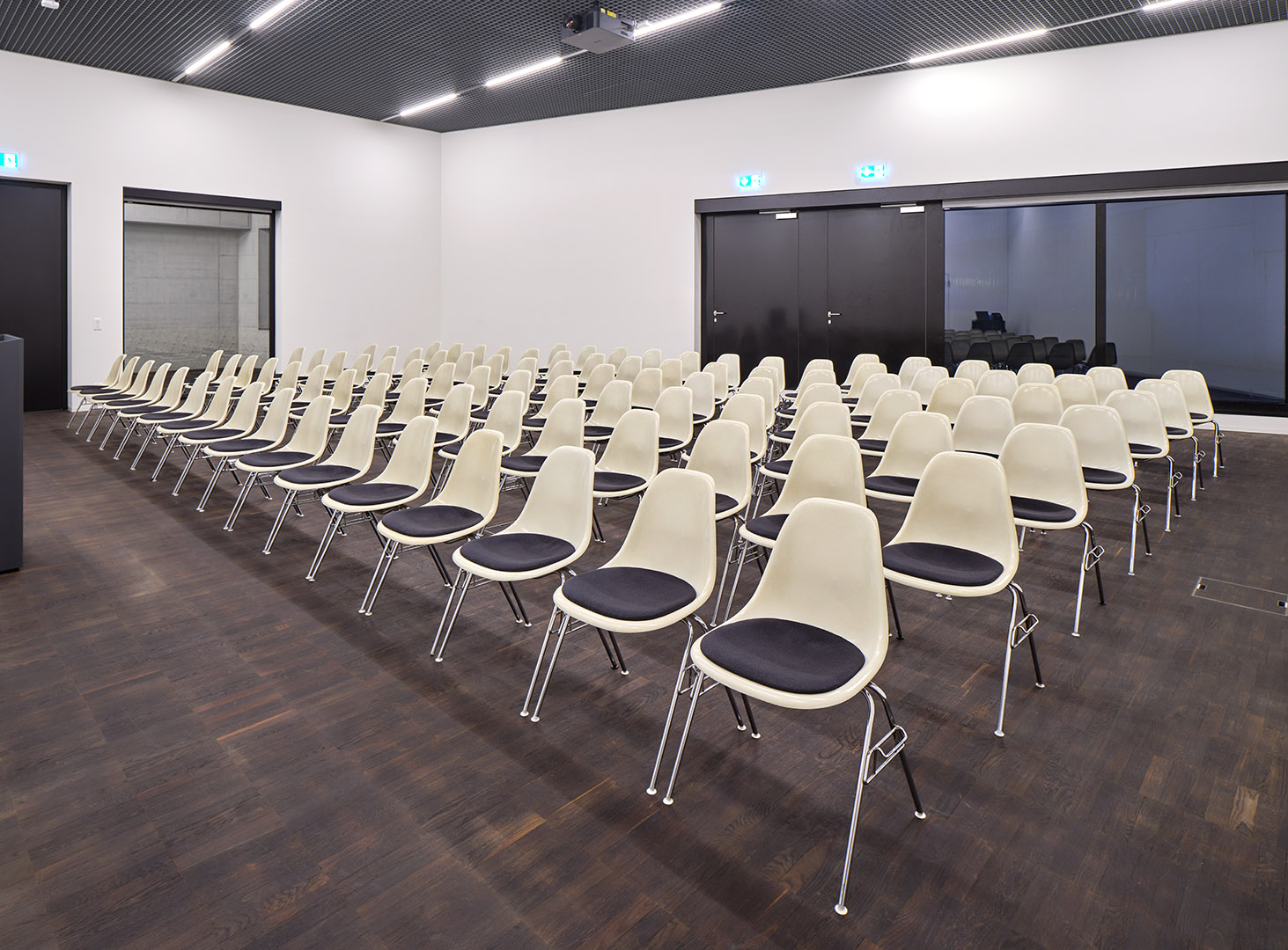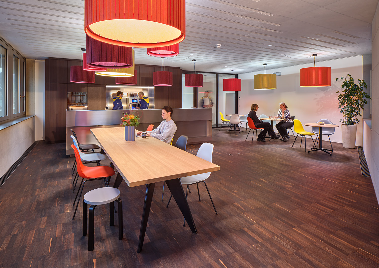 As sustainability is particularly important to the museum, durable Vitra products were selected for the workstations, cafeteria, lounge and retreat areas. Furthermore around 300 Eames Fiberglass Chairs from 1972 were restored and reconditioned. Used in the museum’s restaurants until 2008, they are now employed in various conference rooms within the same building. Architecture: GIGON/GUYER, Interior architecture: Vitra Consulting & Planning Studio." Vitra Homepage Acoustic Lamps, panels in the cafeteria: Impact Acoustic