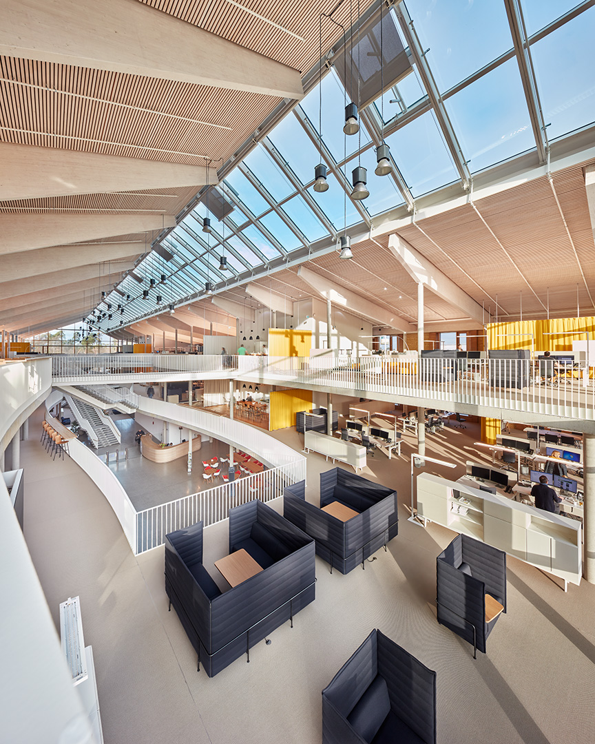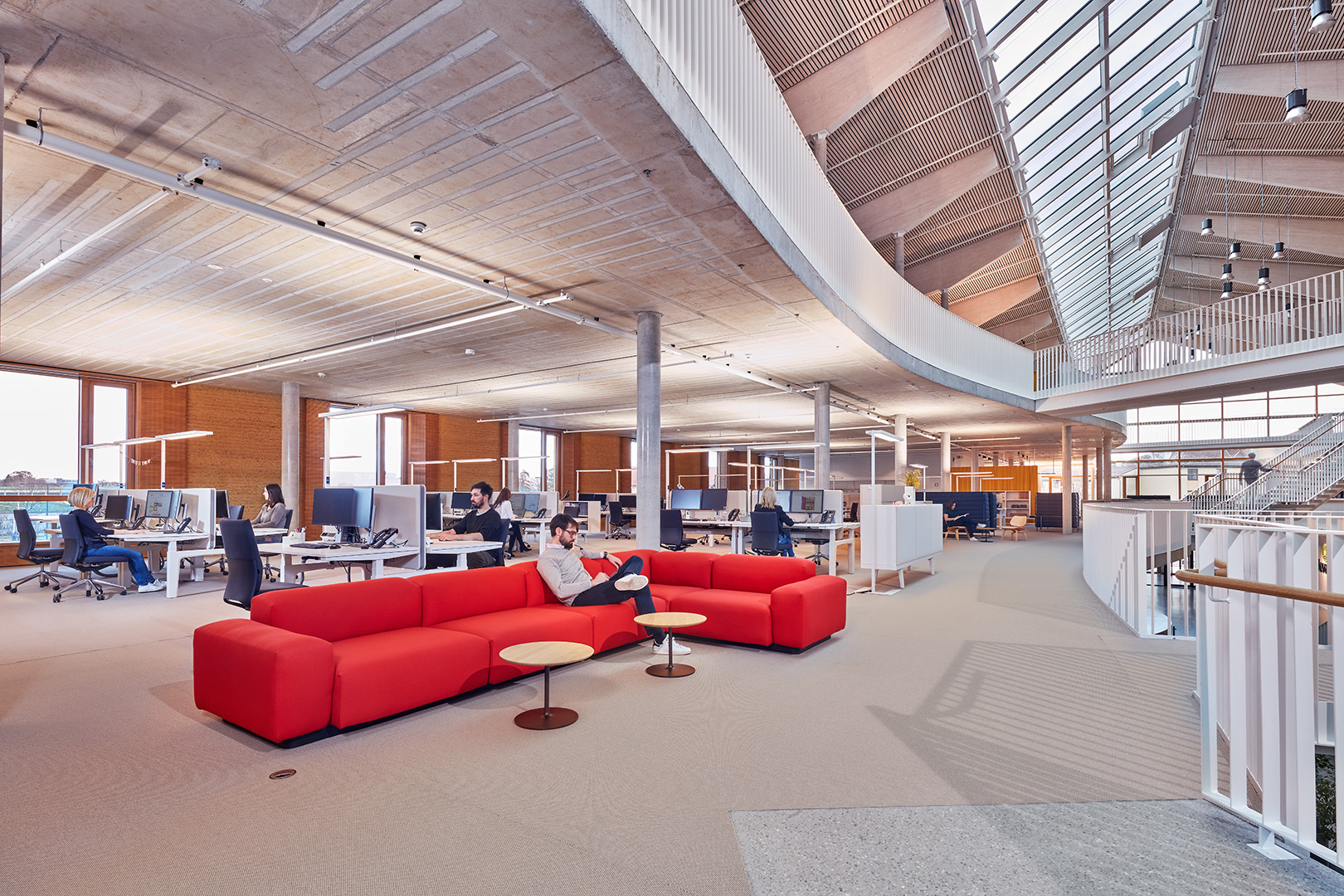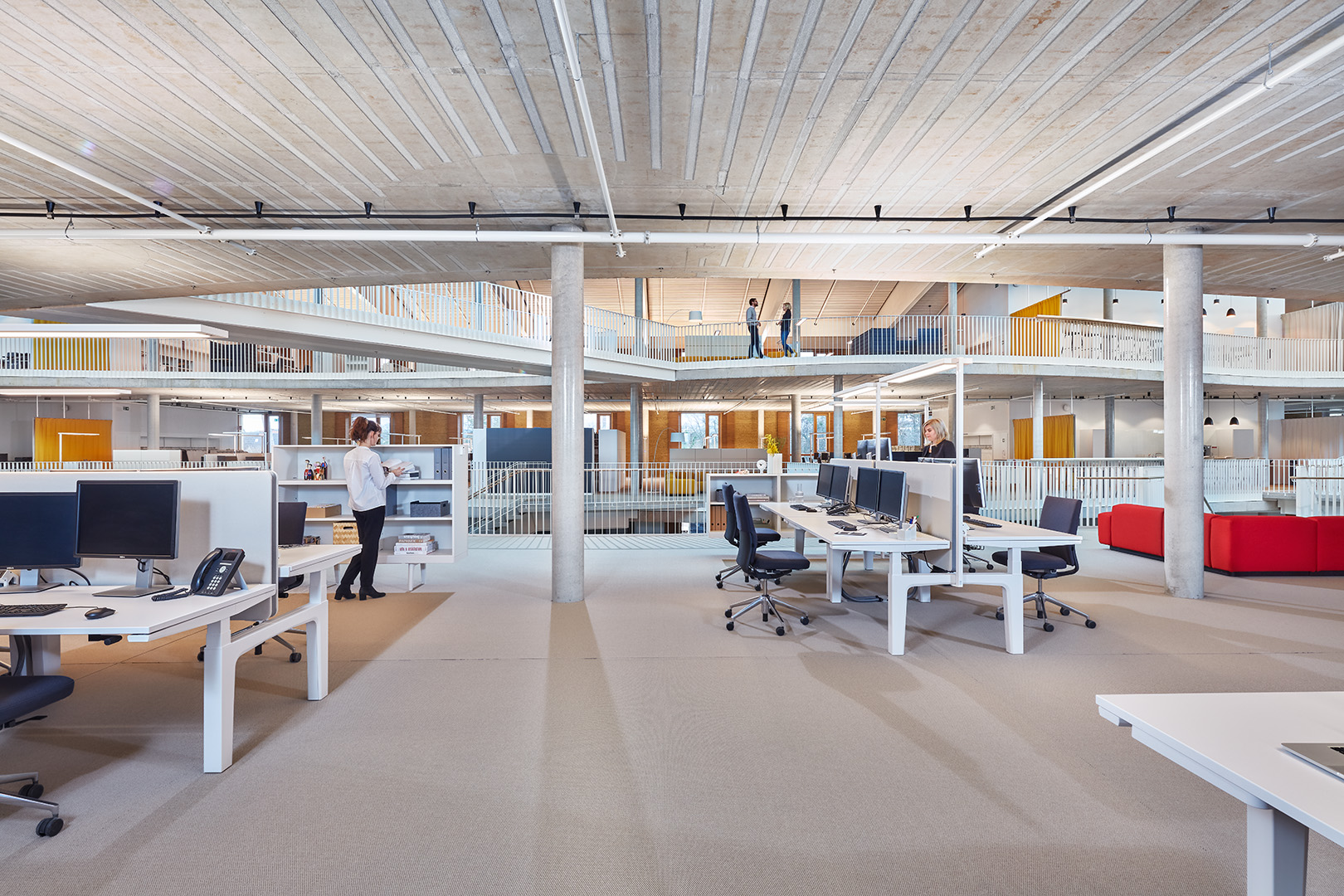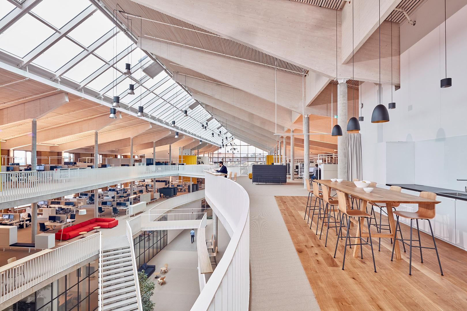 "The 'Alnatura Campus' is located on the site of former barracks in southwest Darmstadt. For the planning and implementation of the project, the organic grocery chain embraced the highest standards of modern work culture and sustainability. Their collaboration with Vitra produced an open-plan work environment in Europe's largest office building with a rammed-earth façade. In designing the two-storey office space with work islands, meeting zones and quiet areas for individual retreat, Vitra analysed the company's space requirements and use of workstations, and employees were invited to participate in workshops during the planning phase with a project-specific sample library of structural elements, furniture and lighting. Alnatura had already outfitted its previous offices with Vitra products. As these were still in good condition after up to 25 years of use, it was decided to promote sustainability by keeping these furnishings and integrating them in the new interior.