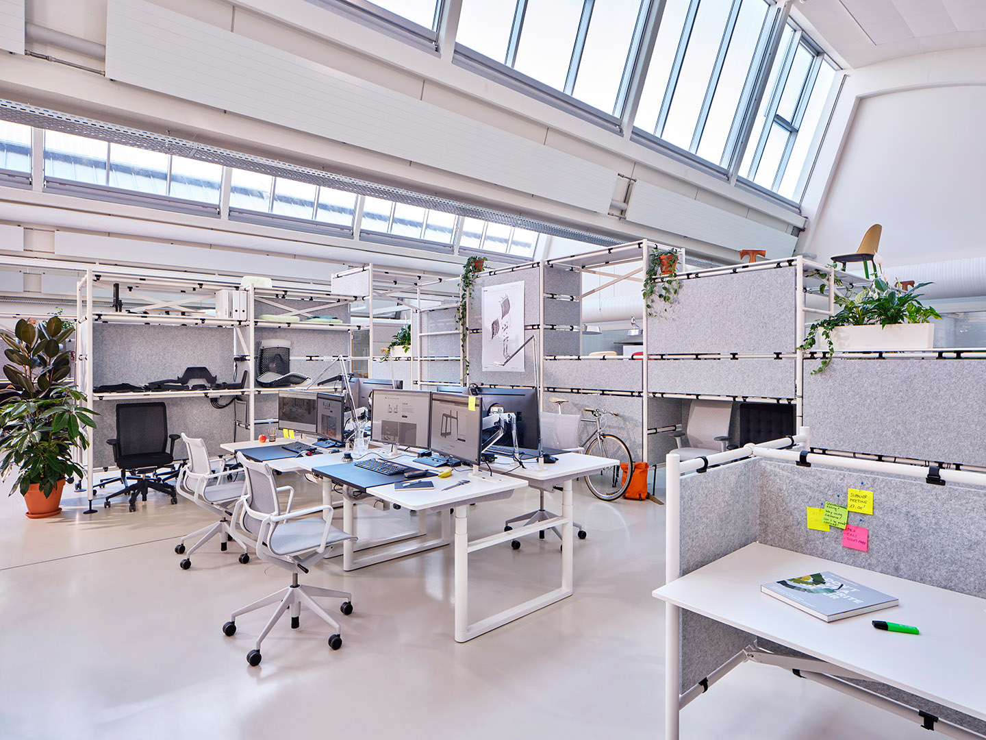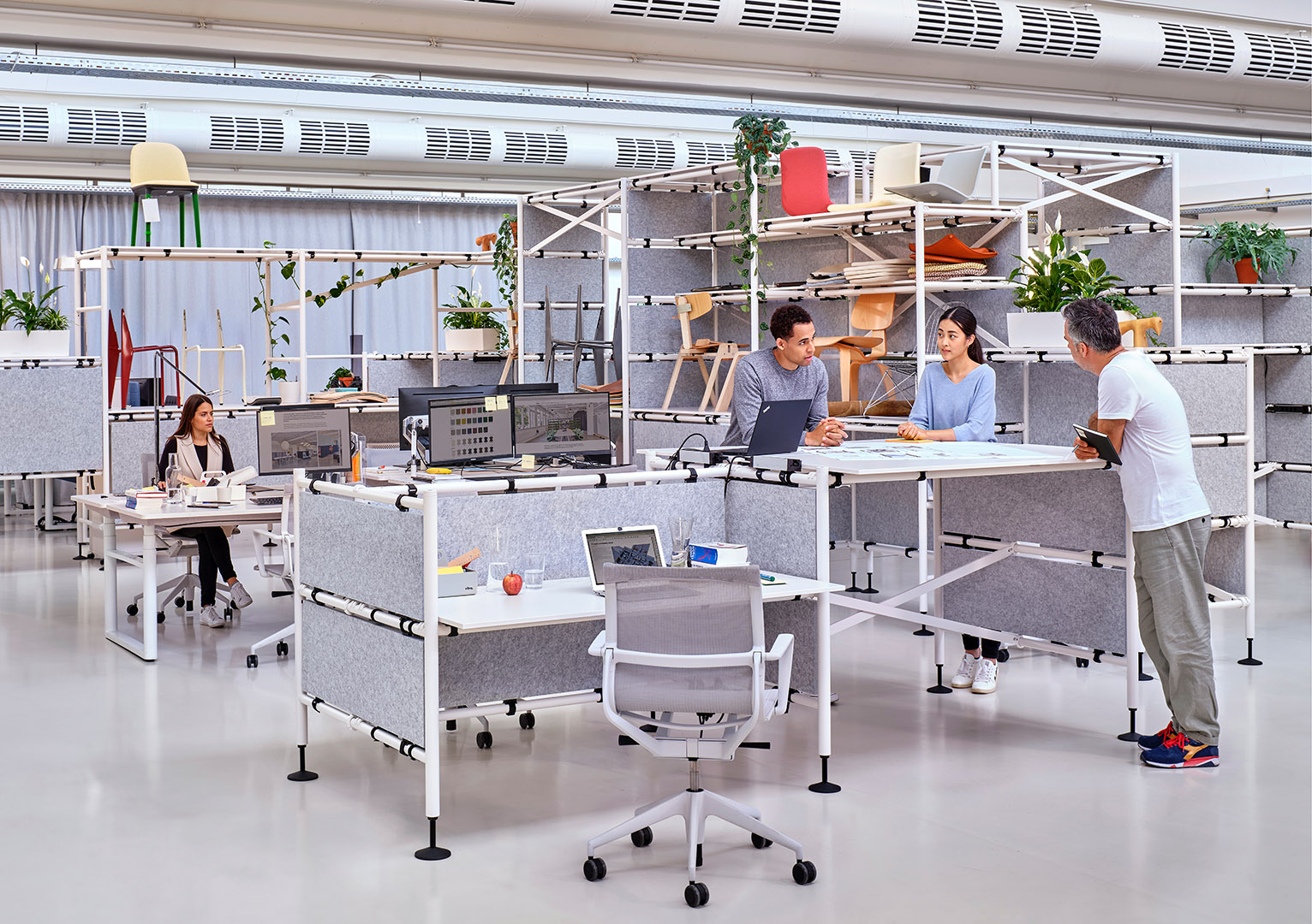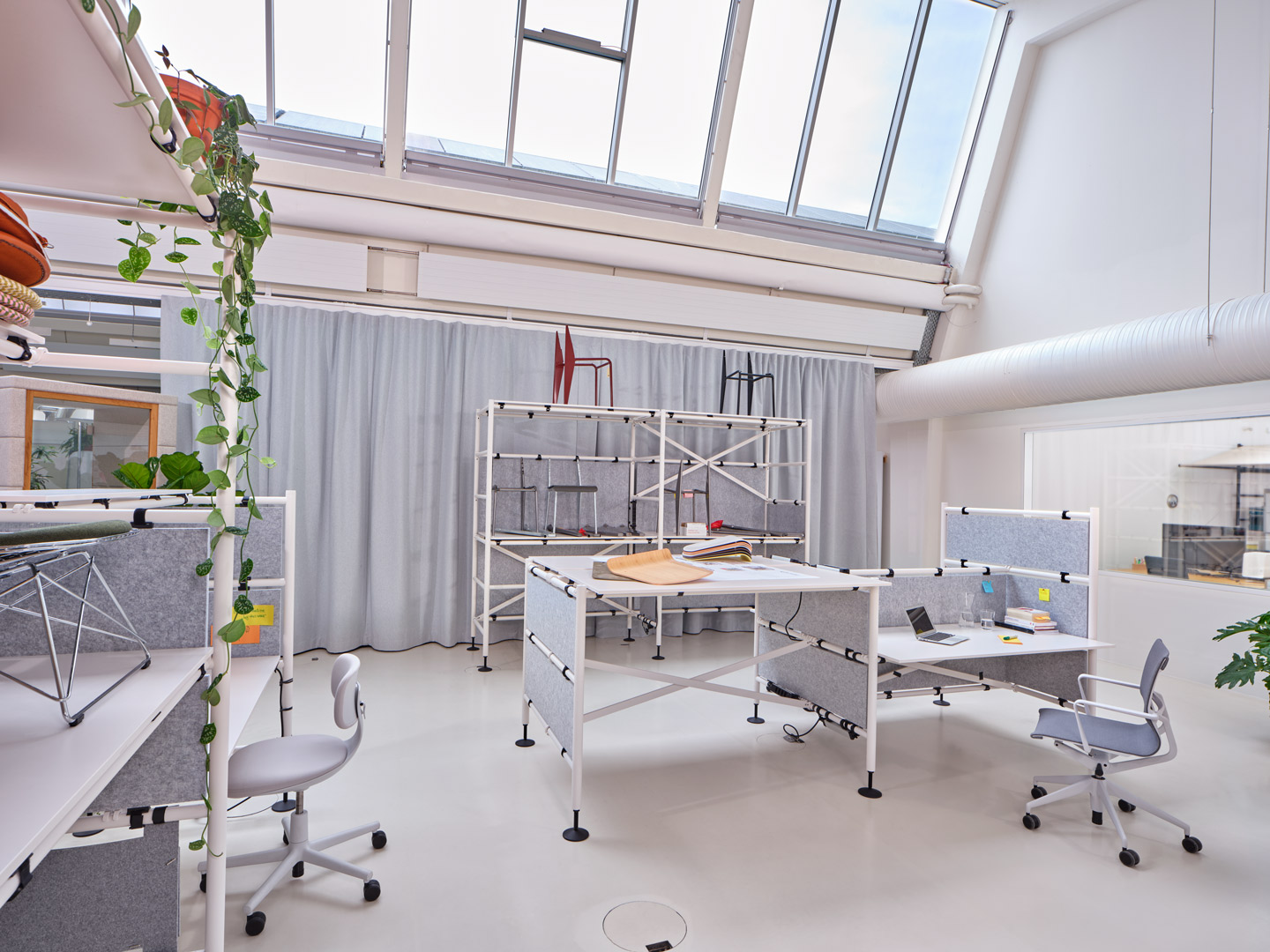 "The office system Comma follows the function and aesthetic of scaffolding, and can be reassembled in different configurations time and again, structuring the work environment as needed." Vitra homepage, https://www.vitra.com/de-de/product/category/office-furniture-systems