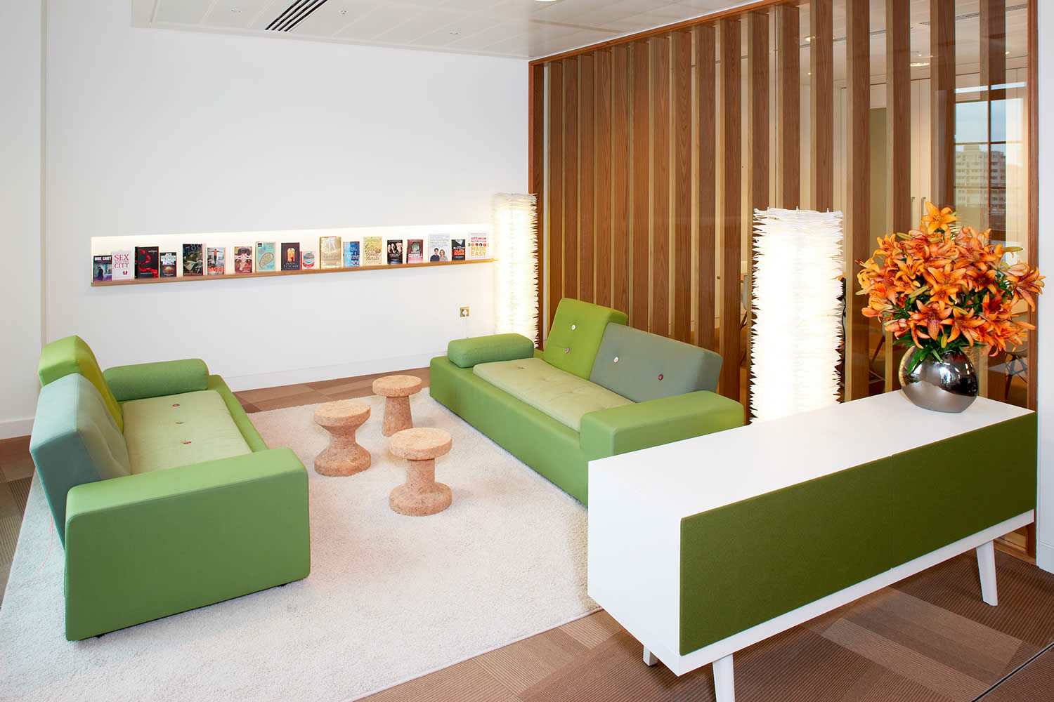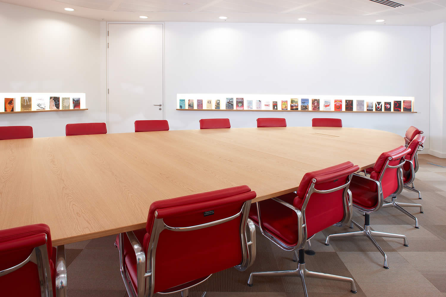 "The publishing house Little, Brown Book Group attaches the greatest importance to extensive teamwork. The Net ’n’ Nest office that was planned and created by Vitra, which feature both communication and quiet areas offers the ideal prerequisites for this. It forms the basis of a contemporary, productive working method that the employees feel comfortable with. Vitra also furnished the reception area, the conference rooms and the meeting areas." vitra; Interior design/planning Vitra Interior Design Services, London; Areas furnished Cafeteria, Conference rooms, Individual offices, Library, Lobby, Meeting areas, Open-plan office, Reception
