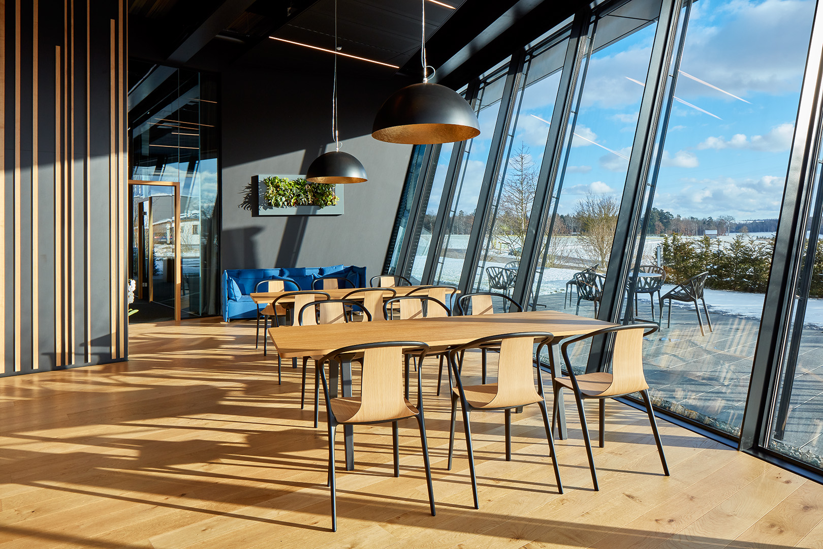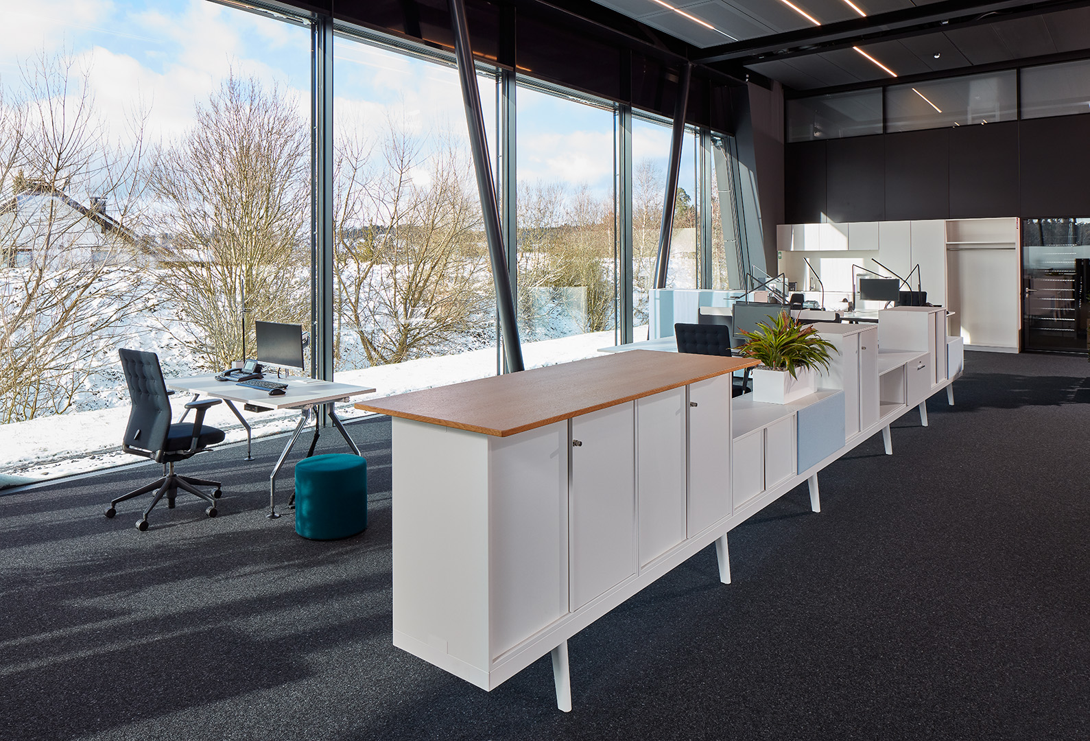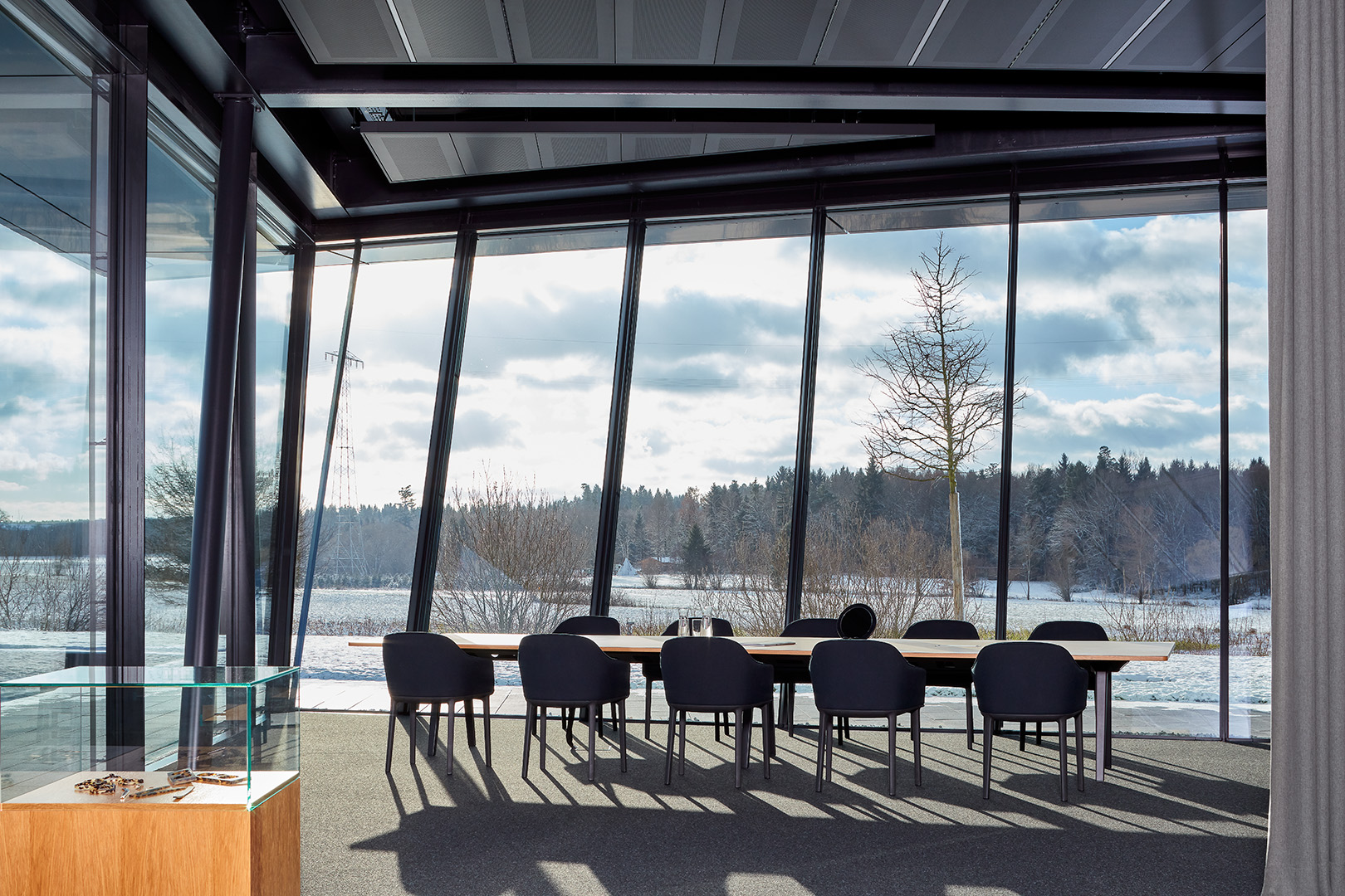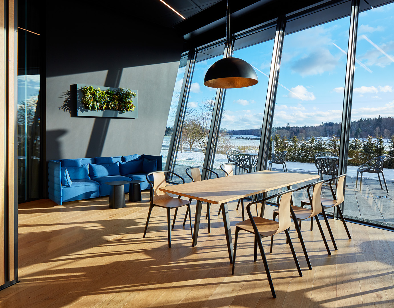 Manufacturer of the famous Steve Job's glasses, Apple CEO. "Constantly growing since its inception 26 years ago, the eyewear manufacturer had outgrown its premises and decided to build a new head office. As senior management wished to sit in the heart of things, the basic concept was an open-plan office layout. A workshop was organised together with Vitra in which issues were raised such as: where does the post arrive, where does it go to then; where and how are design and production coordinated; where are there meeting points for short discussions; where will the printers be; how will we create spaces for quiet retreat; how can we anticipate a rising number of employees etc. Based on the resulting answers and draft planning for lighting and acoustics, Lunor opted for a concept with open and semi-open areas, meeting points for short consultations, and – slightly apart – closed conference rooms. The finished layout is a future-oriented setting that is inspirational to employees. And as Lunor knows about the sustainable benefits of high-quality products from its own portfolio, the entire office was outfitted with Vitra furniture. Architecture: Schmelzle + Partner Architekten Hallwangen. " https://www.vitra.com/en-us/office/clients/details/lunor-ag