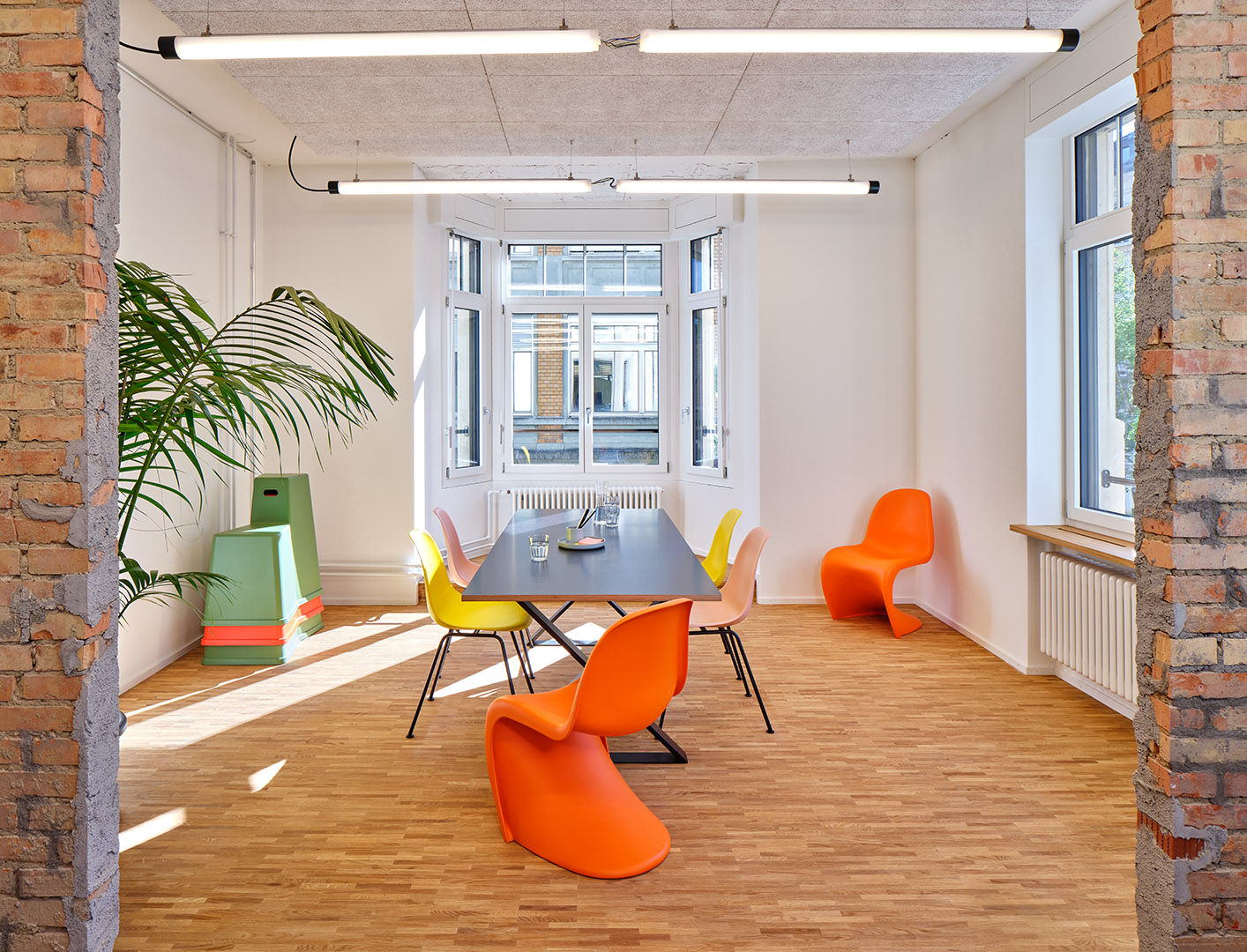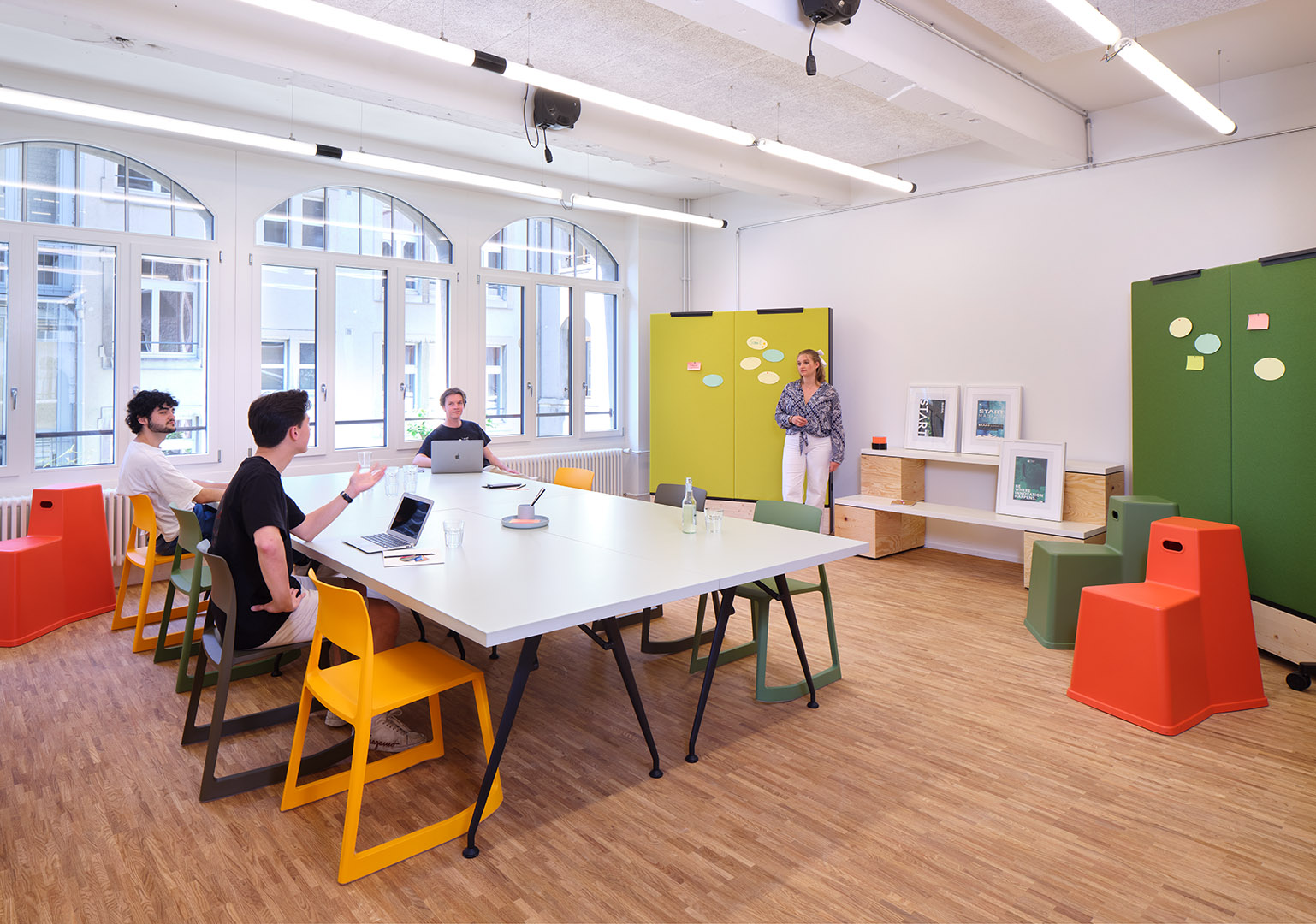 Many different sources were involved, including previous Vitra and Novu Office contract customers in Switzerland and Germany who no longer needed the furniture. The unpredictable nature of this type of procurement required complex logistics with interim storage in St. Gallen and an iterative method to implementation: the interior was planned room by room as furnishings arrived, defining a coherent overall concept that was discussed with START Global and subsequently installed. This approach required a great deal of trust from the client.