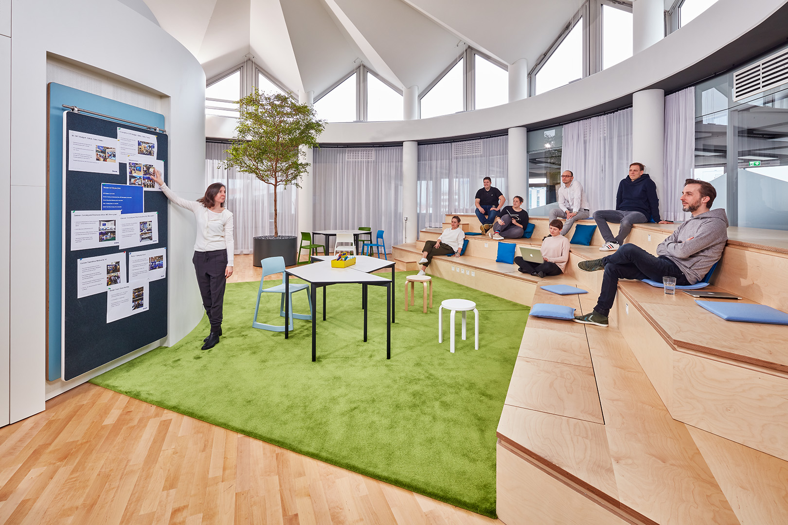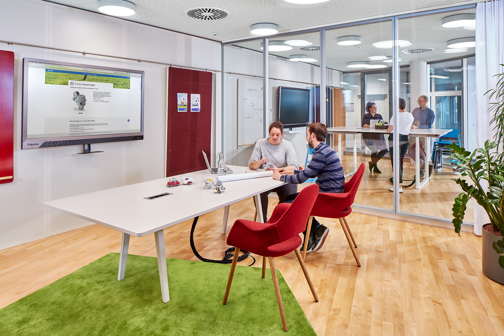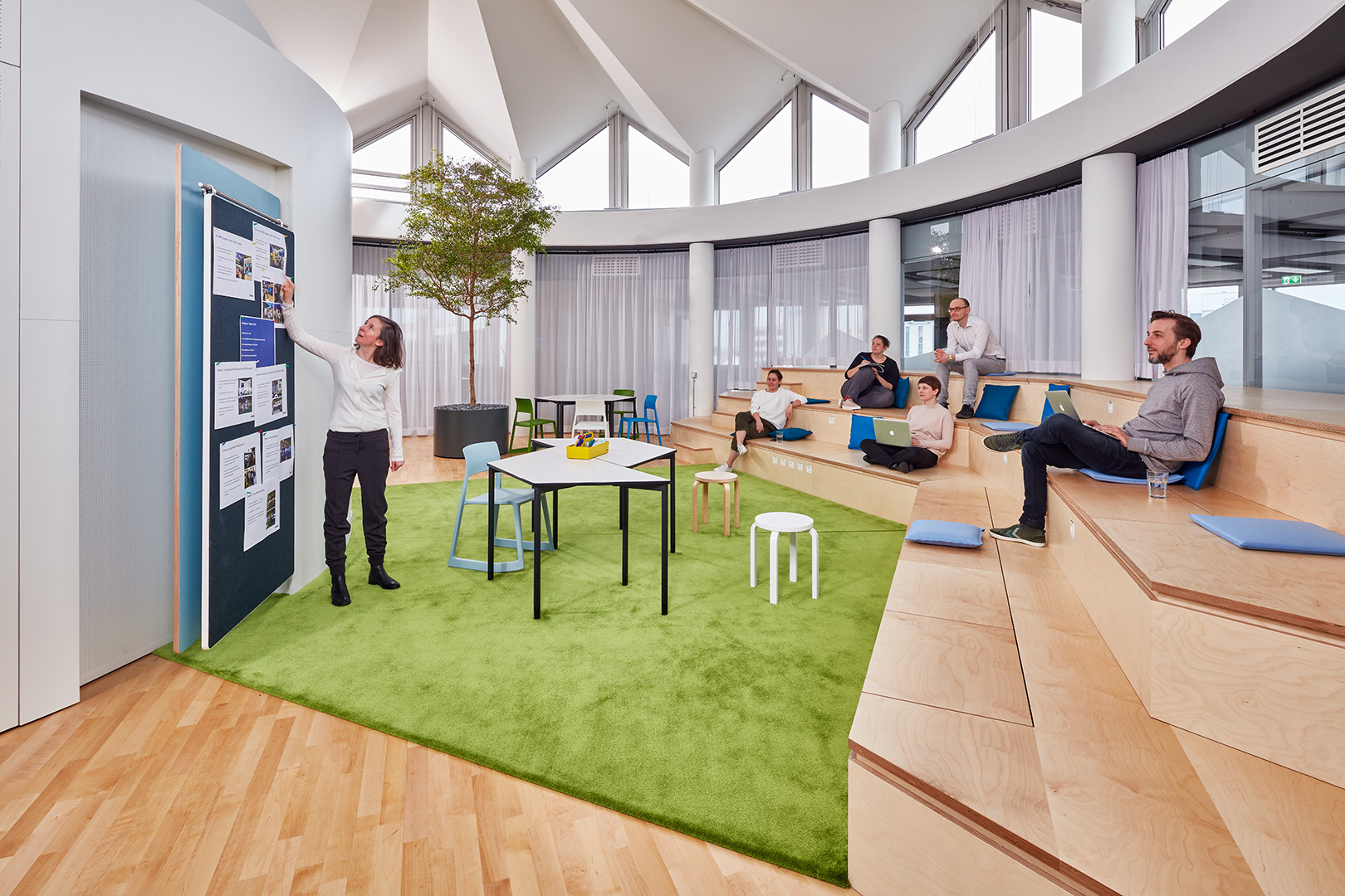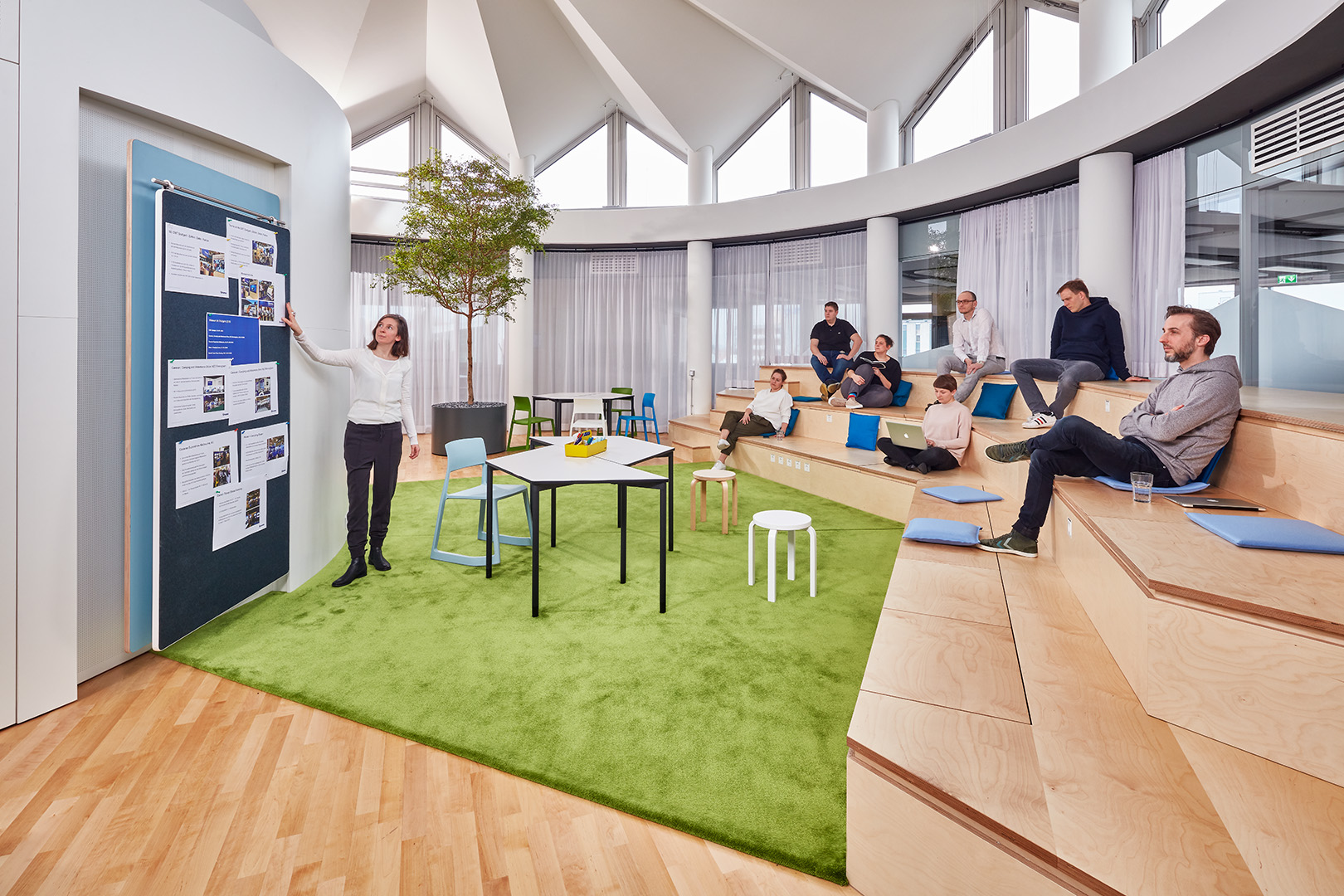 Vitra focuses on people, as independent studies show that motivation and efficiency peak in well outfitted spaces. In workshops moderated by Vitra, employees actively participate in the planning process: who needs what space, who communicates with whom and who needs what additional equipment.
