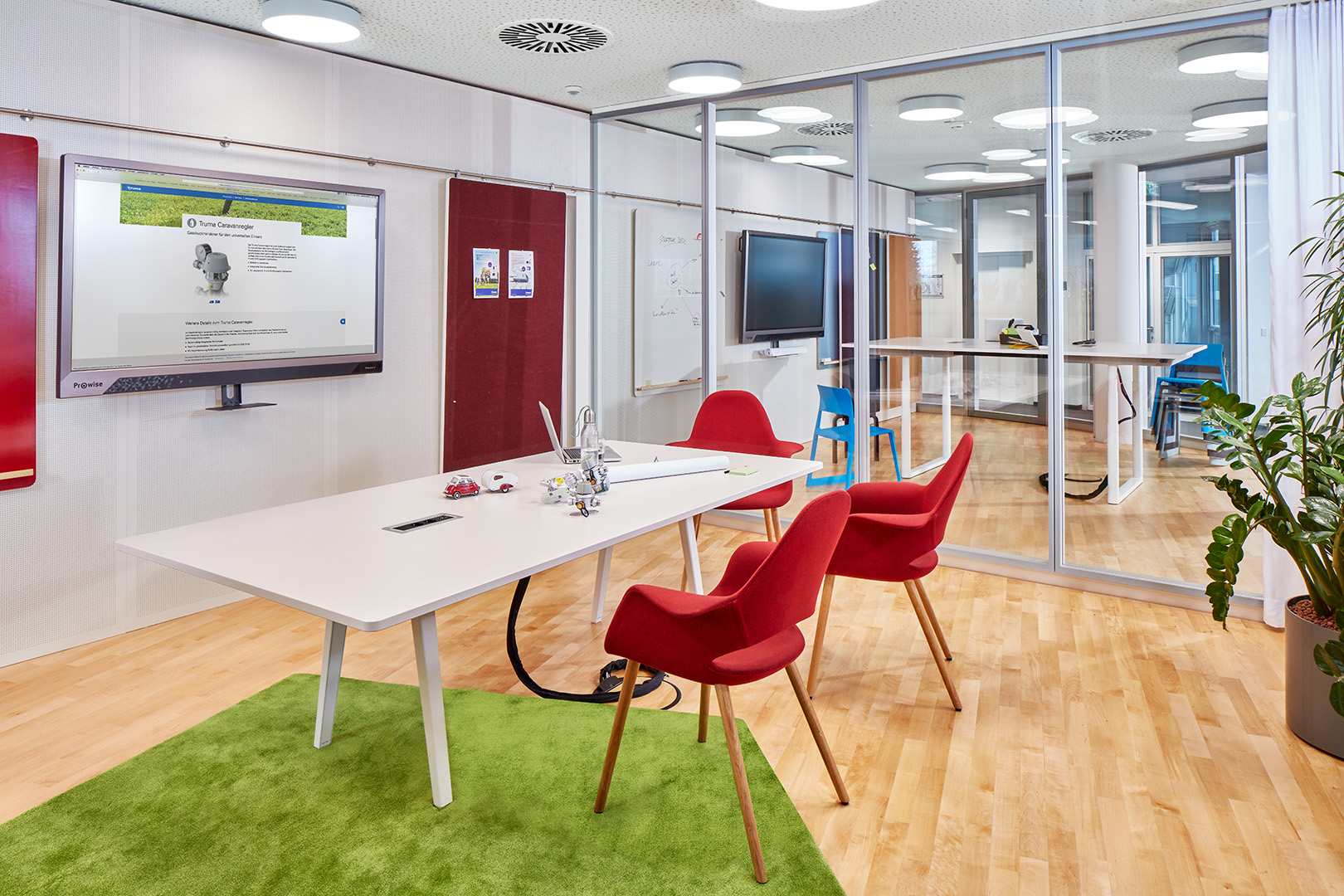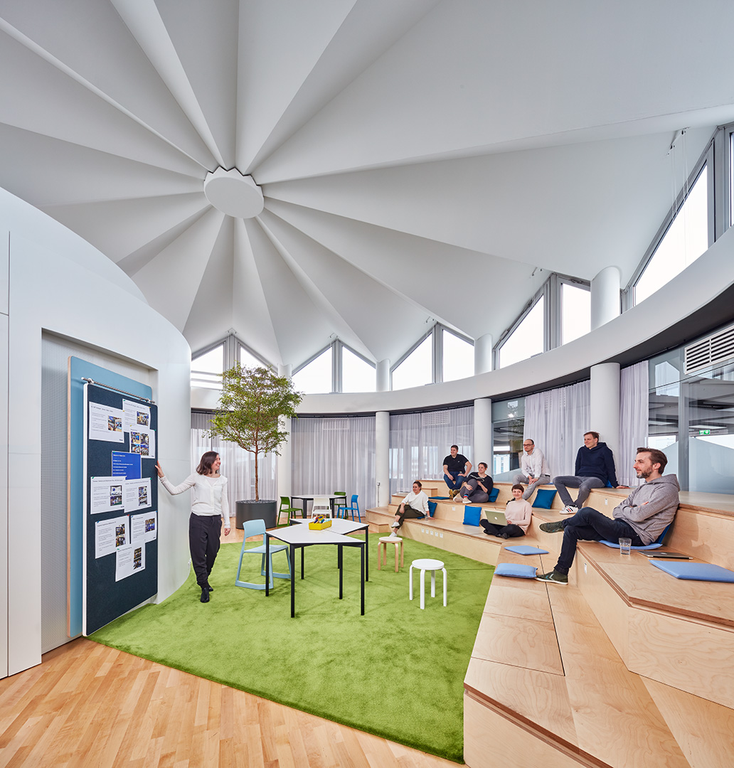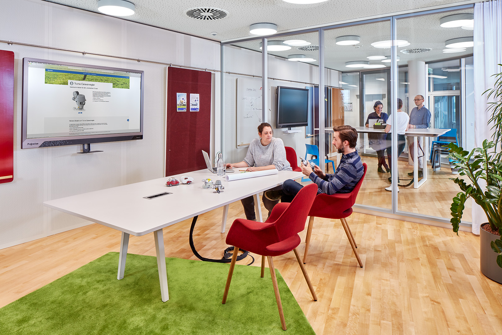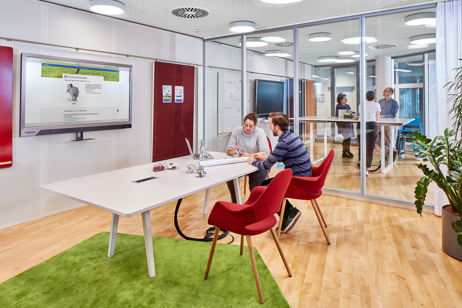 Vitra focuses on people, as independent studies show that motivation and efficiency peak in well outfitted spaces. In workshops moderated by Vitra, employees actively participate in the planning process: who needs what space, who communicates with whom and who needs what additional equipment.