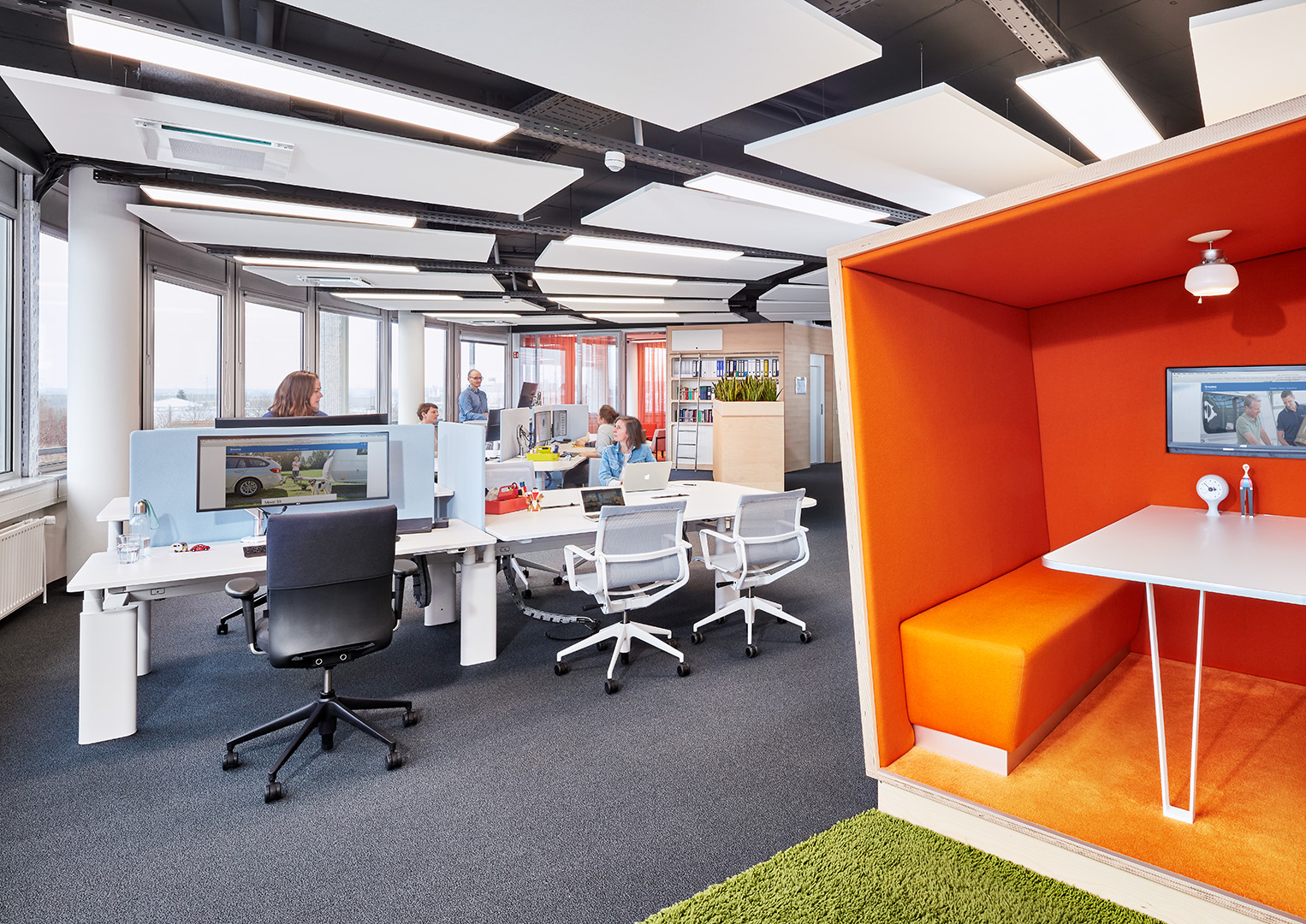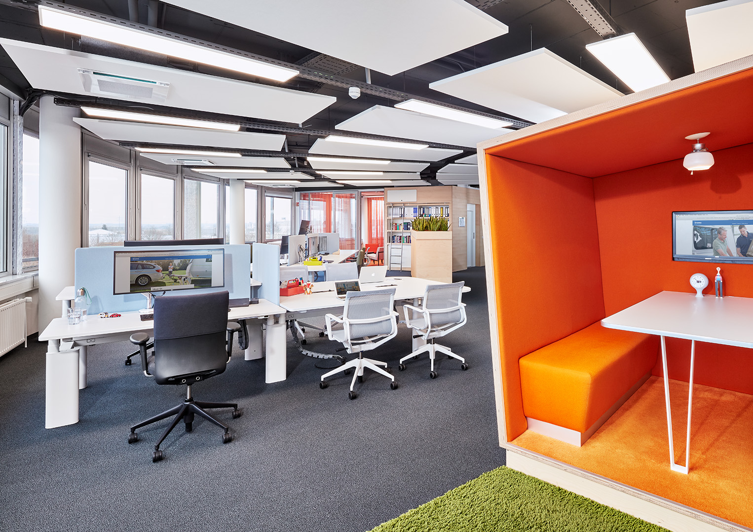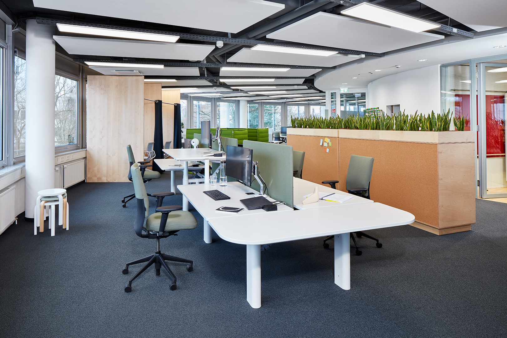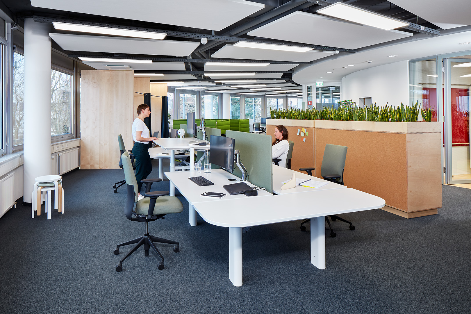 Managing the change was an essential success factor as the work environment was transformed from a series of team offices structured by numerous walls with allocated desks to an open-plan landscape that promotes communication and team work. Drawing on experience from countless projects, Vitra was able to accompany this transition all the way, alleviate any apprehension and stir up enthusiasm. The new offices were used naturally and intuitively from the word go and were very well accepted by company employees.
