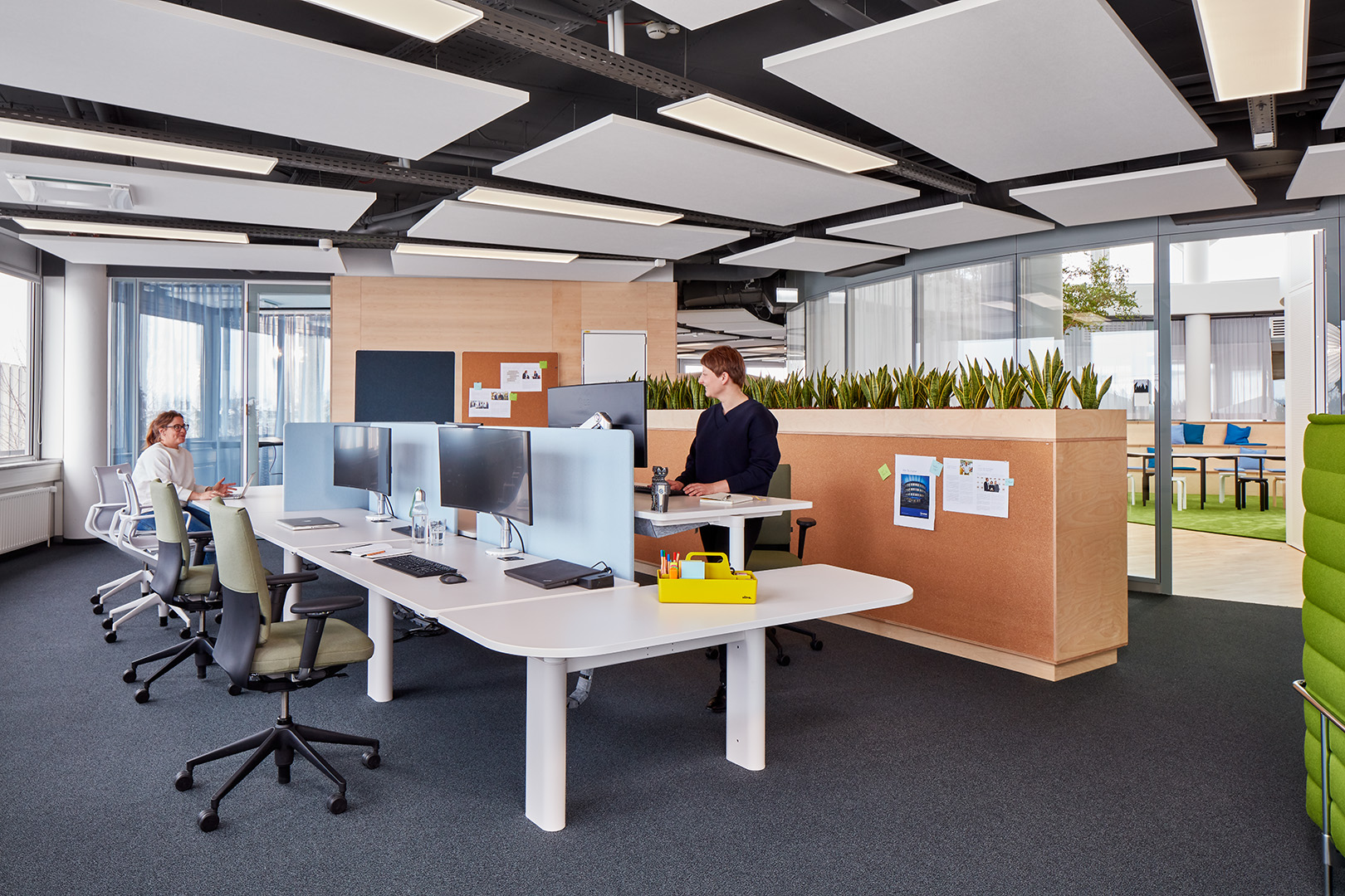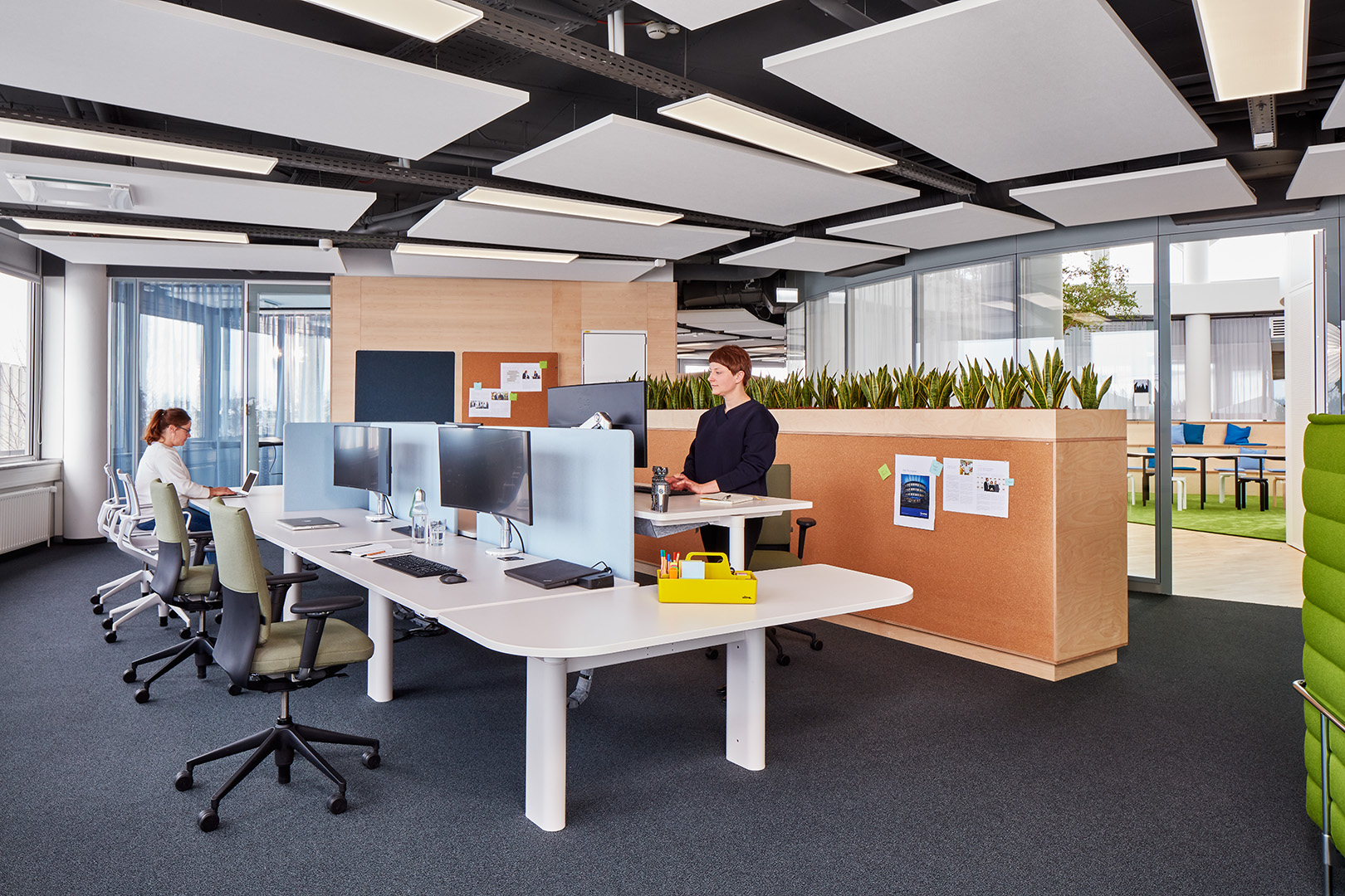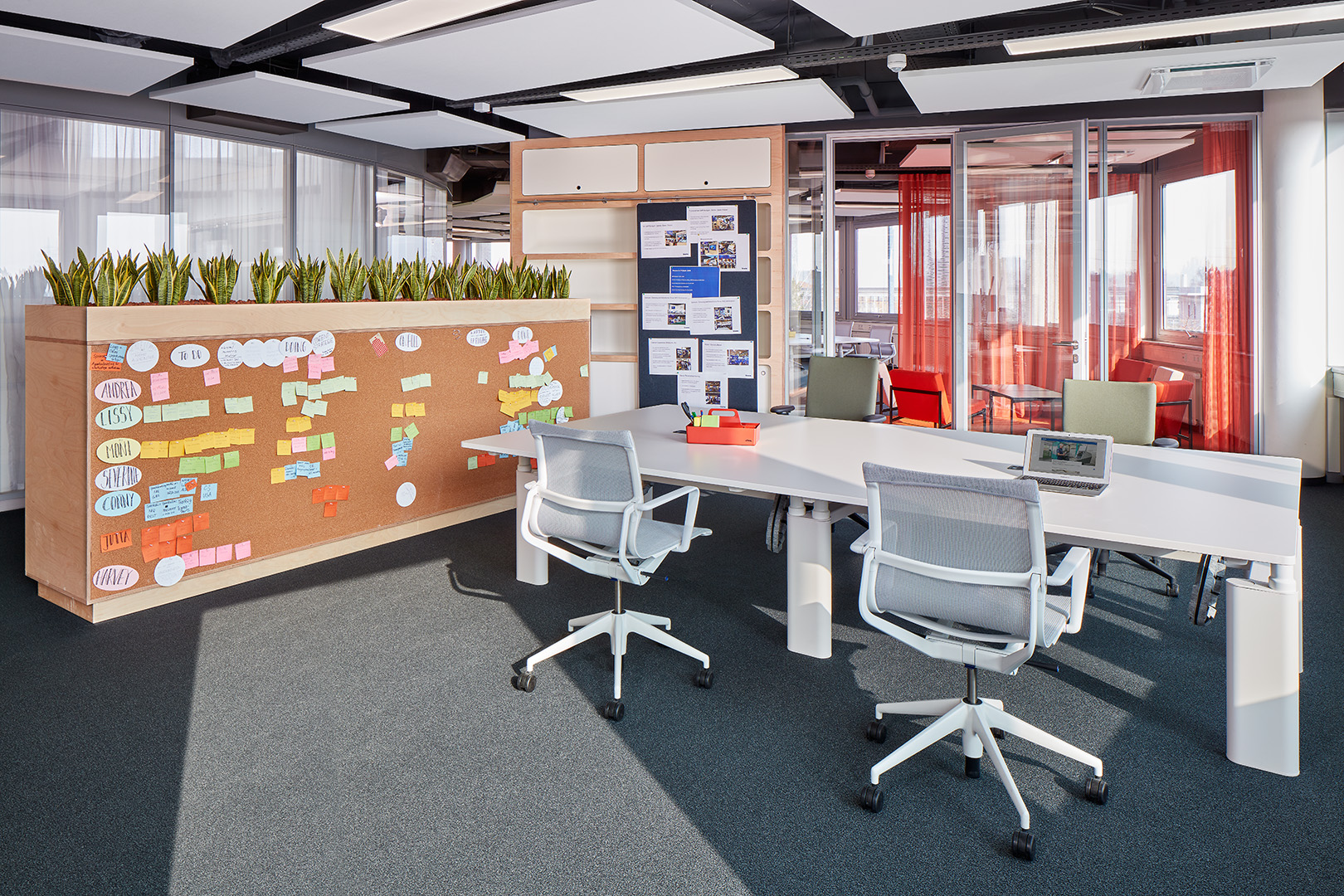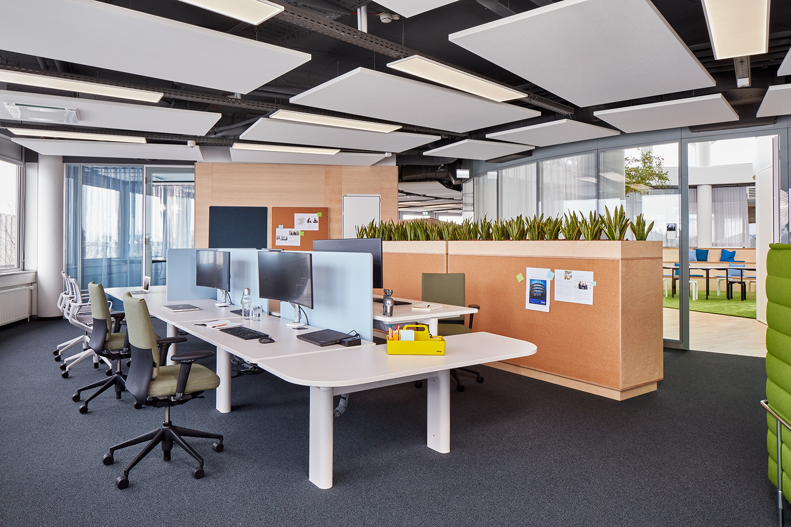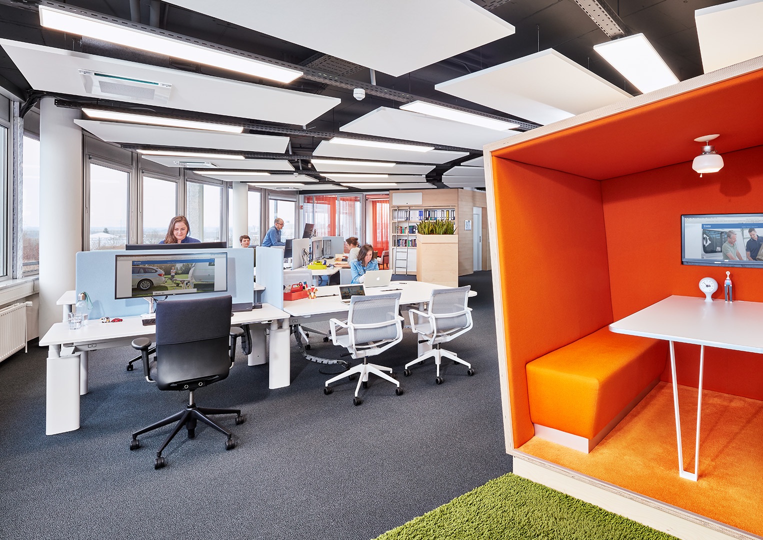 Managing the change was an essential success factor as the work environment was transformed from a series of team offices structured by numerous walls with allocated desks to an open-plan landscape that promotes communication and team work. Drawing on experience from countless projects, Vitra was able to accompany this transition all the way, alleviate any apprehension and stir up enthusiasm. The new offices were used naturally and intuitively from the word go and were very well accepted by company employees.